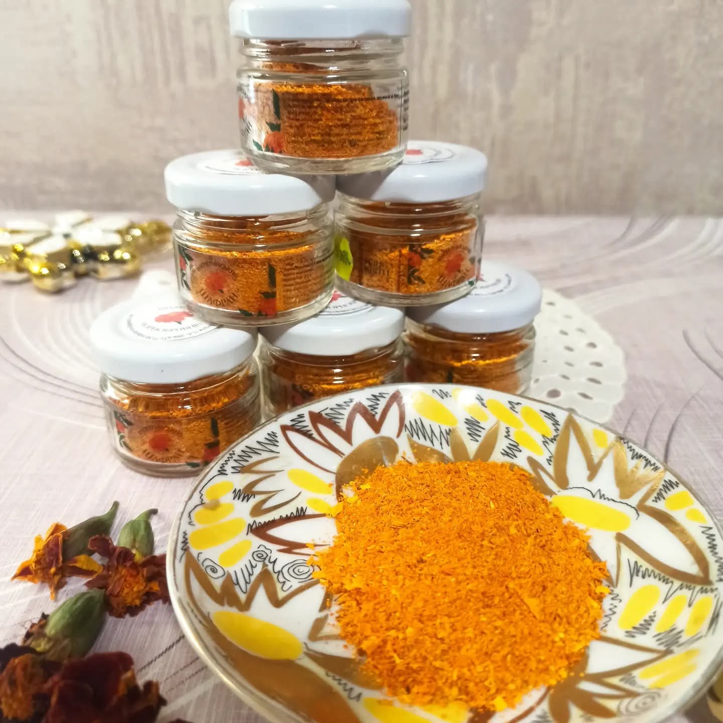 Following the start of the full-scale invasion, Natalia began experimenting with seasonings, jams, and sauces made from marigolds, creating products that reflect Ukrainian culture and its natural heritage.