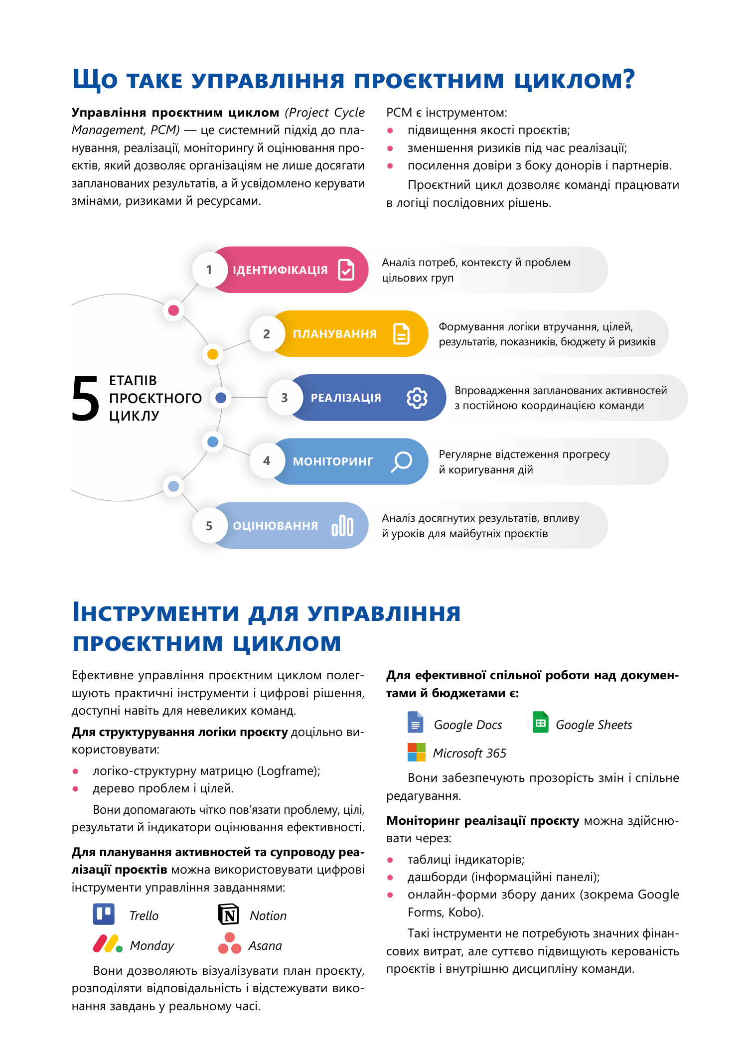 Управління проєктним циклом (Project Cycle Management, PCM) — це системний підхід до планування, реалізації, моніторингу й оцінювання проєктів, який дозволяє організаціям не лише досягати запланованих результатів, а й усвідомлено керувати змінами, ризиками й ресурсами.