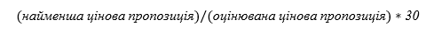 розраховується за принципом «чим менша ціна, тим вищий бал» за формулою: