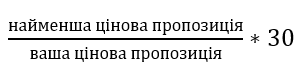 розраховується за принципом «чим менша ціна, тим вищий бал» за формулою: